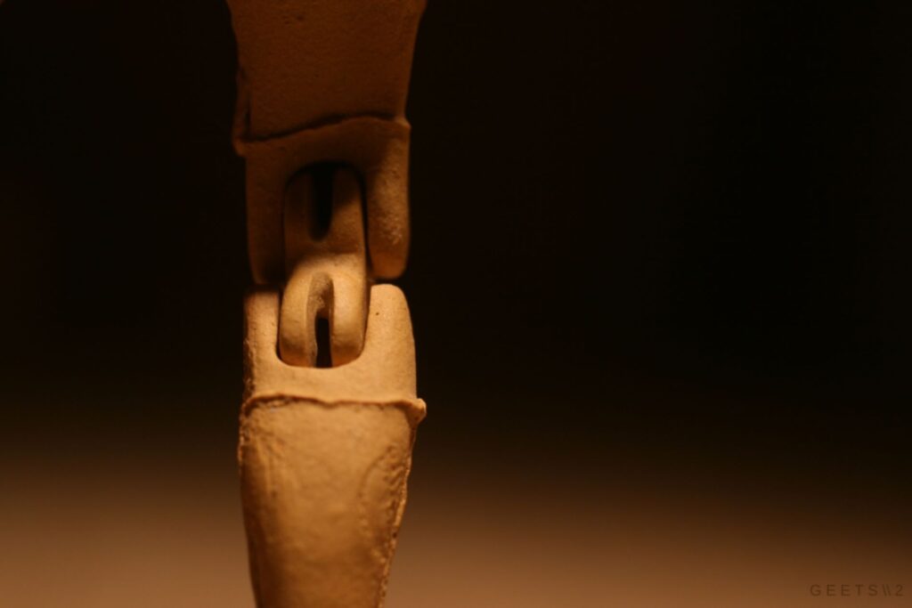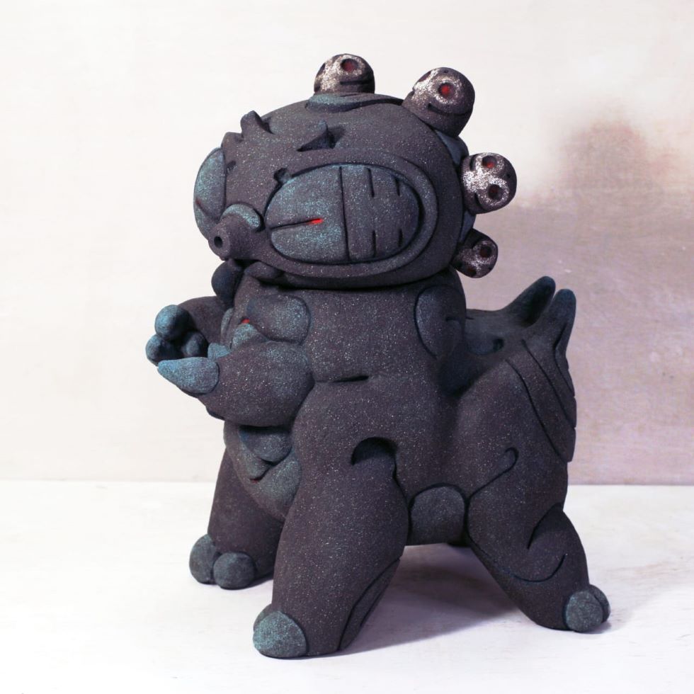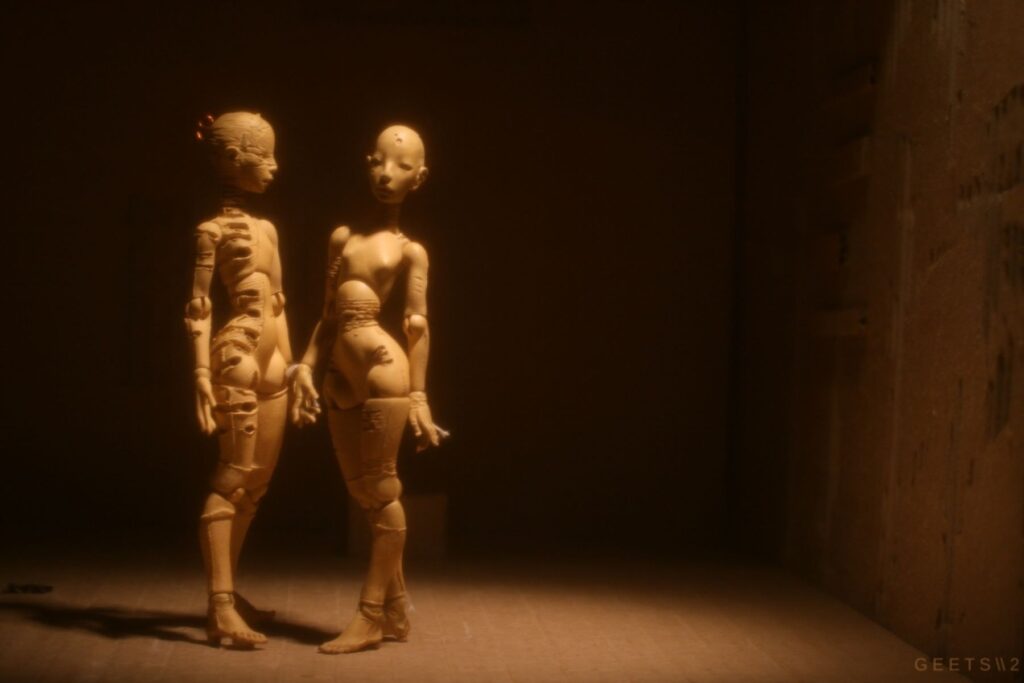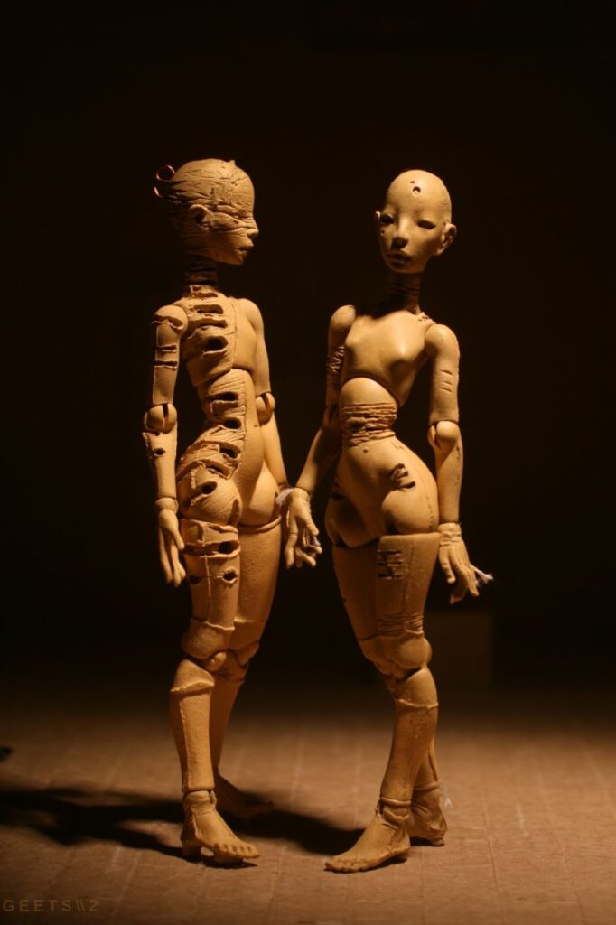 Другая значимая для меня работа – это две Корпускулы, миниатюрные керамические куклы, отлитые из дикой глины, собранной на руинах Бузулинского керамического завода в Амурской области. Я сама обработала и приготовила литьевую массу из выкопанной из карьера и хранившейся на территории заброшенного завода глины и отлила несколько кукол. Корпускулы получились из изначально бракованных отливок с пузырями и кавернами, отлитых в изношенные гипсовые формы, расползшиеся швы которых оставляют характерные отметки на отливках. Мне показались очень красивыми эти странные отливки, и я сделала двух андроидов, обитающих на заброшенной космической станции.