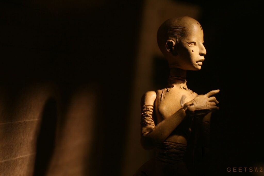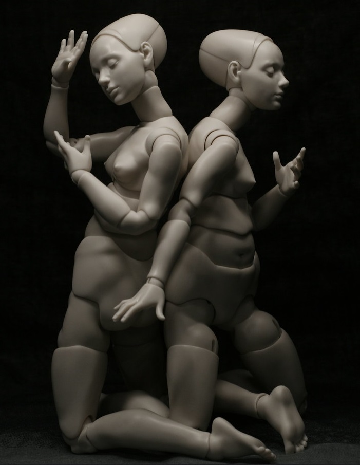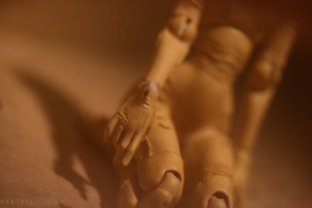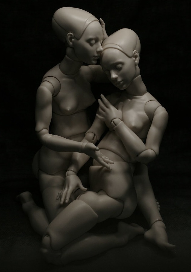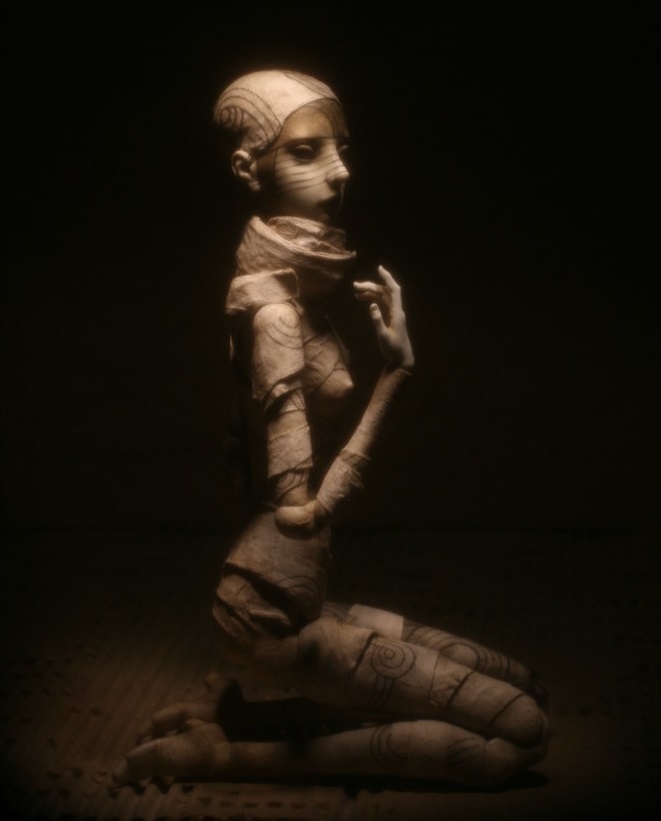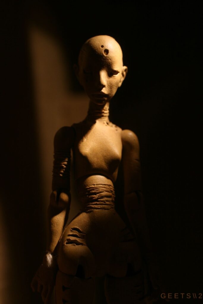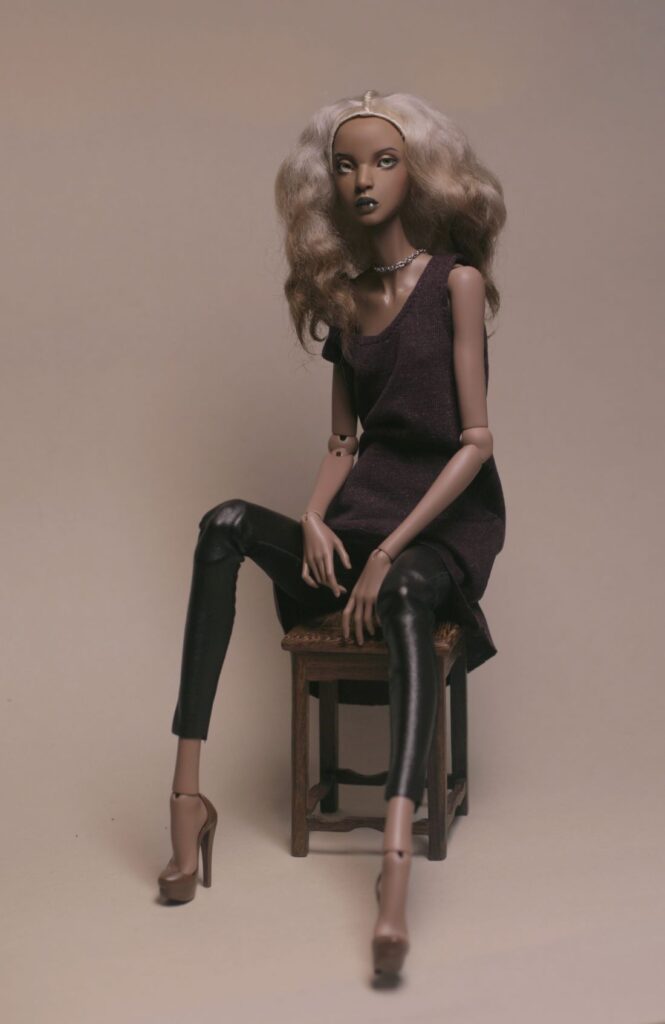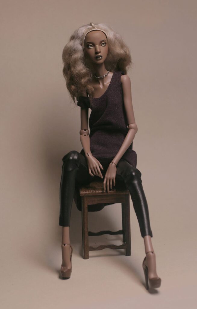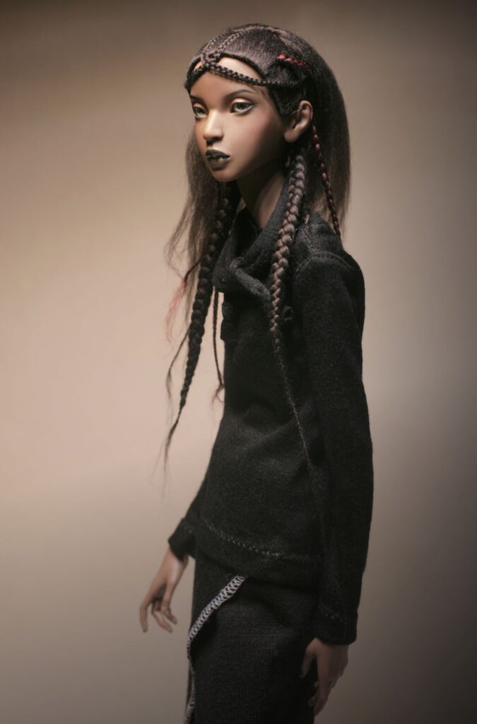 В этой работе сфокусированы самые важные для меня источники вдохновения: сюрреалистические кукольные фотографии Ханса Баллмера, японские авторские куклы (например, Игэты Хироко), поздняя готическая и раннеренессансная европейская скульптура, египетские скульптурные портреты периода Амарны и дизайн Чужого от Ханса Руди Гигера. Собственно, Анитья не является куклой, я считаю ее артикулированной скульптурой, с которой можно обращаться как с куклой, то есть покрасить и нарядить, но также можно оставить ее такой, какая она есть, и в этом случае тоже она будет являться законченным произведением.