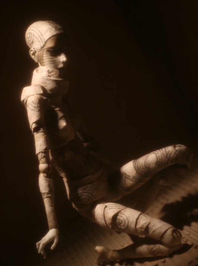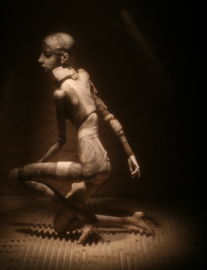 — Таких много, но расскажу, пожалуй, о трех. Вот, к примеру, Странный Аттрактор: портреты этой куклы до сих пор служат мне аватарками в соцсетях. Это одна из первых тестовых отливок с мастер-модели фэшн-кукол, такие отливки обычно выбрасывают как брак. У нее тонкая фигура стройной девушки-модели, затянутой в странный слоистый скафандр, и шлем на голове. Тело куклы оклеено серой крафтовой бумагой, поверх которой нанесена роспись в виде мотивов графических изображений Странного Аттрактора – математического понятия.