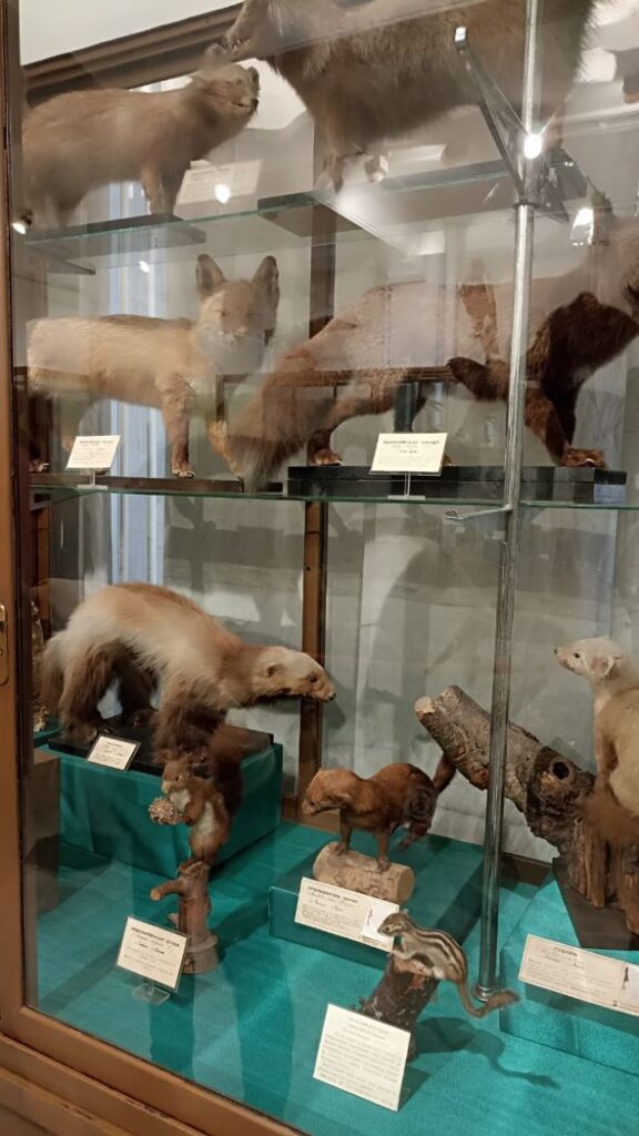 На первом этаже музея экспозиция животного мира, тоже сохранилась со дня основания музея. Уделено внимание палеонтологии и полезным ископаемым острова. А на втором этаже экспозиции посвящены открытию острова, исследователям, коренным народам и первопоселенцам. Дендрарий на территории музея радует разнообразием хвойных растений. В музее мы познакомились с местным писателем и краеведом Сергеем Федорчуком, купили у него несколько книг о Южно-Сахалинске и взяли автограф.