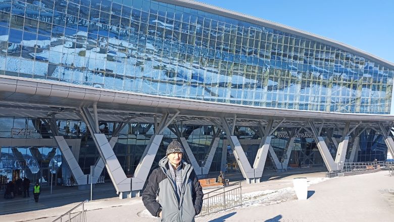 — Изумил аэропорт. Новый, современный, просторный, удобный и чистый. В едином стиле оформленные торговые зоны, местные продукты и сувениры. А зоны ожидания подчеркивали местный колорит – сделаны в виде иглу. На втором этаже разместили выставку местных художников о Сахалине. А на выходе из здания аэропорта нам открылось необычайное зрелище: весь город отражался в зеркальных стеклах его фасада. Это невероятно красиво.