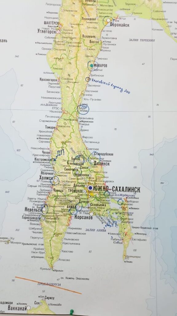 — Были в Южно-Сахалинске, его окрестностях и в городе Корсакове. На острове очень красивый и разнообразный ландшафт. Если Южно-Сахалинск стоит на равнине и окружен сопками и потому там почти не бывает ветра, то в Корсакове сложный рельеф, жить там, как мне показалось, не очень удобно, хоть там и красиво – открывается вид на залив Анива.