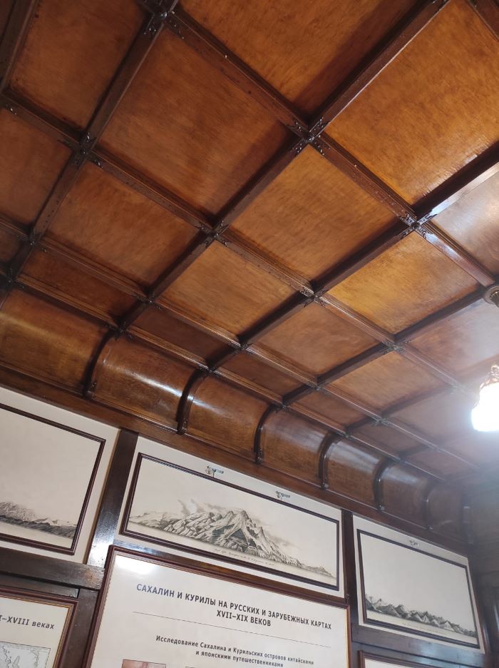 — Мы посетили Сахалинский областной краеведческий музей. Он находится в здании 1937 года постройки, причем оно специально построено японцами под музей. Само здание музея и его территория восхищают своей уникальностью и достойны углубленного изучения. Старинные деревянные и стеклянные потолки, двери, дверные ручки, ступеньки, окна, витражи, стены, мозаика на полу – дотрагиваешься и чувствуешь погружение в историю.
