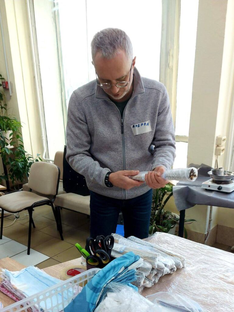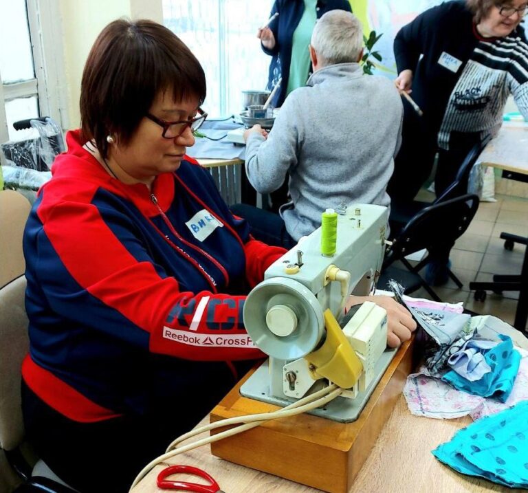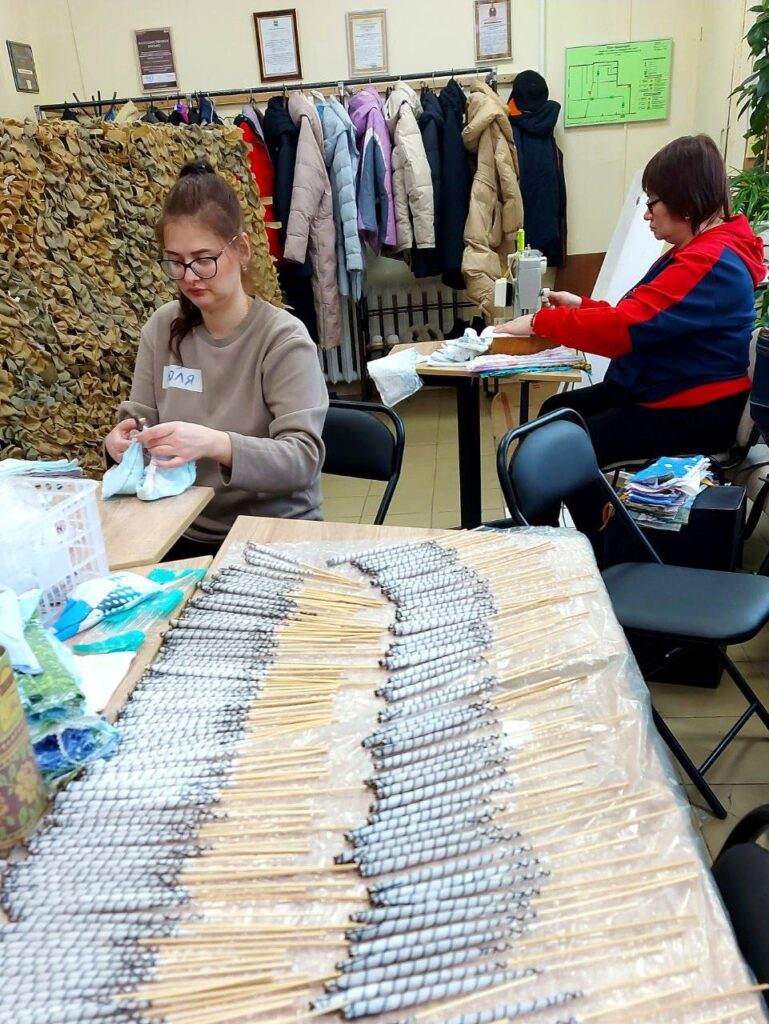 Совместными усилиями добровольцы изготовили 217 мешочков для сушки обуви, покрыли парафином 340 суперспичек, наполнили синтепухом 30 подушек, а также сплели маскировочную сеть.