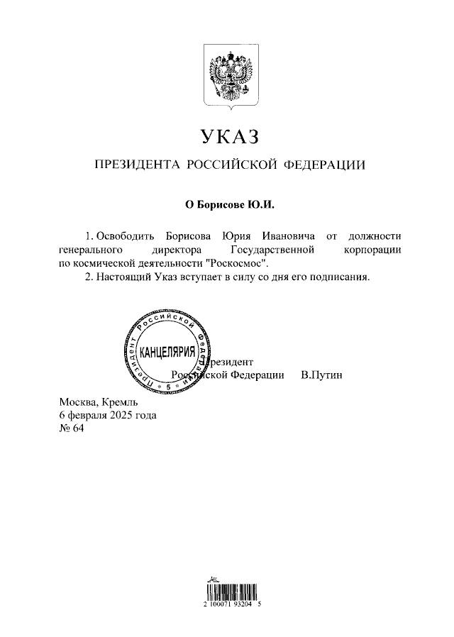 Напомним, что Юрий Борисов был главой «Роскосмоса» с 15 июля 2022 года. Он сменил на этом посту Дмитрия Рогозина.