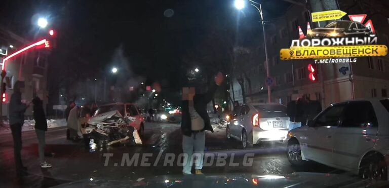 В районе дома № 73 на улице Калинина в амурской столице ночью с 6 на 7 февраля столкнулись две иномарки – Honda-CRV и BMW. По данным паблика roadblg, медицинская помощь понадобилась обоим водителям и троим пассажирам: они получили травмы. Кадры с места ДТП широко разошлись в социальных сетях. Однако на них внимание привлекли не столько покорёженные машины, сколько вышедший перед ними на проезжую часть мужчина. Он кричал, ругался, размахивал руками и даже рвал на себе одежду, при этом мешая проезду транспорта. Автоинспекторы пытались призвать его к порядку, но мужчина на их требования не реагировал. Тогда правоохранителям пришлось применить силу. Мужчину доставили в отдел полиции.