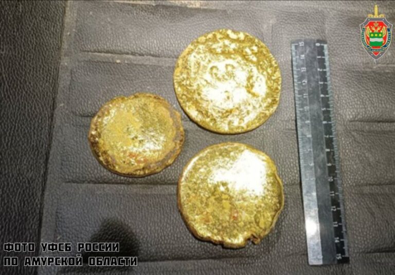 Сотрудники региональных органов госбезопасности вышли на амурчанина, который незаконно хранил у себя крупную партию самородного золота. Драгметалл уместился в три слитка весом свыше 1,2 килограмма. Эти круглые неровные пластинки из золота оценивались более чем в 10 миллионов рублей.