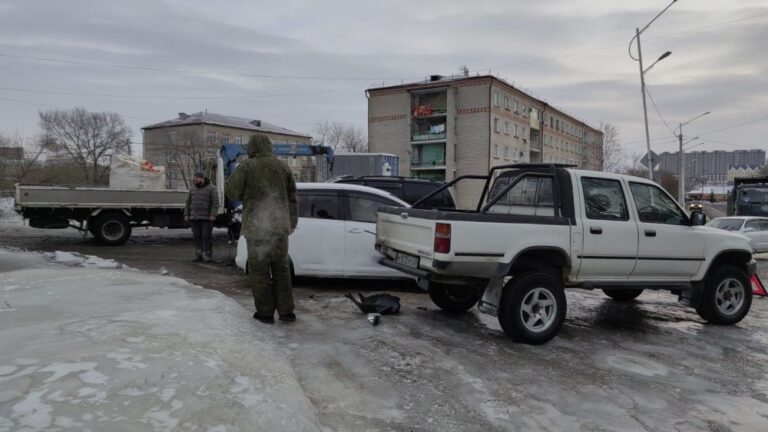 На заледеневшей Нагорной в Благовещенске произошло тройное ДТП