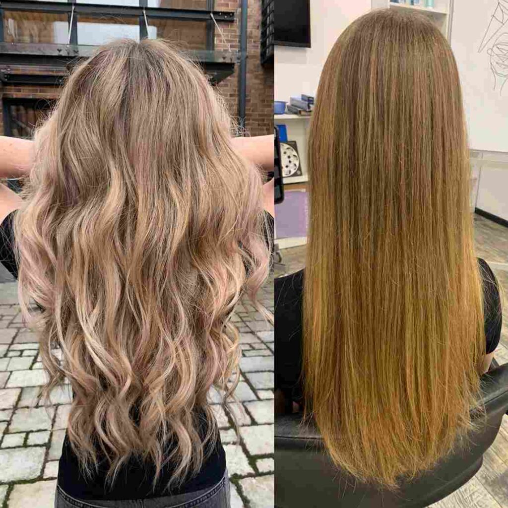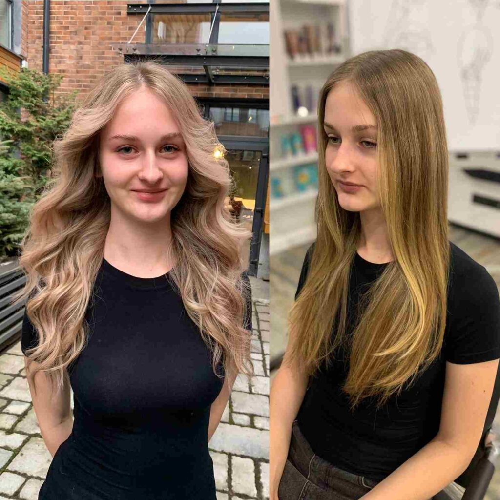 И, наконец, КАЧЕСТВО ВОЛОС. За счёт быстрого обесцвечивания и редкой коррекции, как мы называем, поднятия блонда, сохраняется качество волос, и можно отрастить качественную длину.