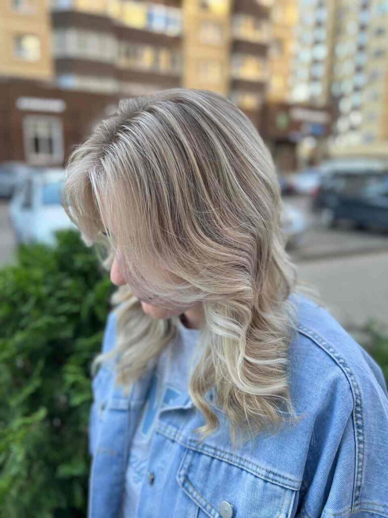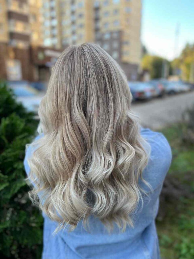 – Наоборот. Это даже плюс, когда отросли свои корни, а по длине какой-то блонд еще остался. С помощью бразильских техник очень легко создать плавный переход на отросших корнях, а длину можно и не трогать, чтобы сохранить качество волос. Если хотите отрастить длину, бразильский блонд самое то! Эта техника идеальна. Потому что вот эти вот наши новые блики около корней, они будут идеально вписываться в длину. И если есть седина, то это тоже подходящая техника, чтобы ее скрыть. И хочется напомнить всем блондинкам о важности профессионального домашнего ухода после обесцвечивания. Увлажняющие шампунь, бальзам, маска, несмываемое средство для облегчения расчесывания и термозащита должны быть у каждой блондинки.