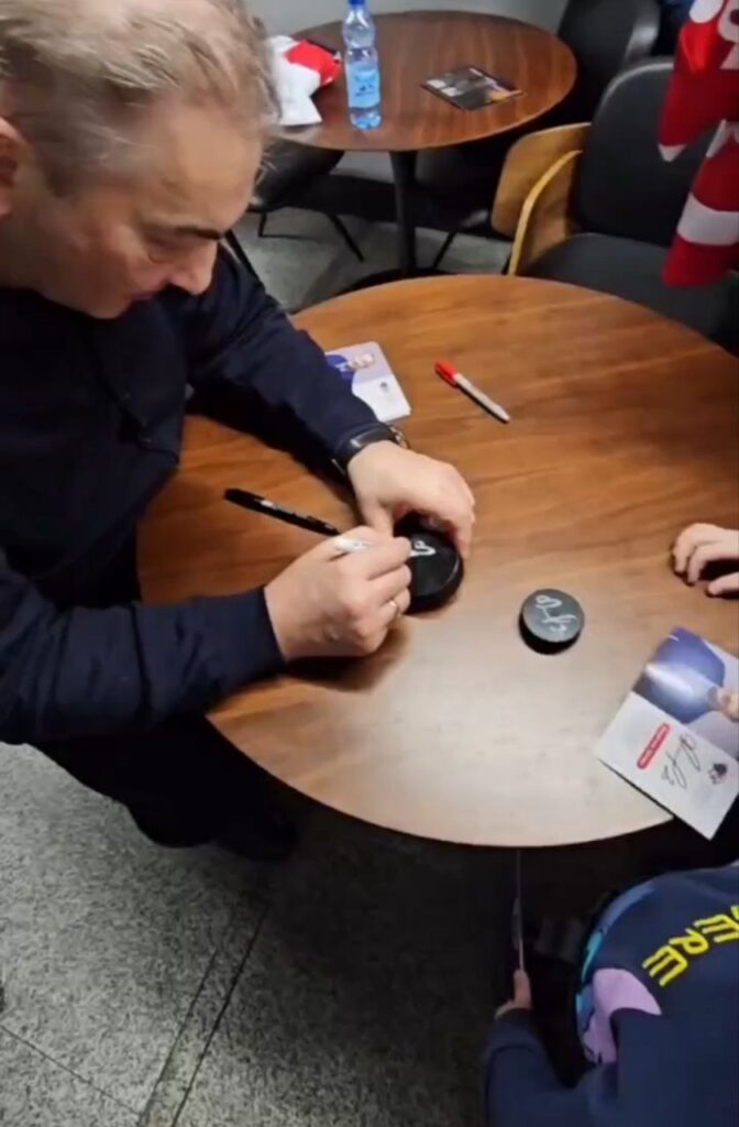 Первыми встретить гостя удалось юным хоккеистам из амурской команды «Форвард». Ребята смогли не только поговорить со спортсменом, но и взять у него автограф. Свою подпись Владислав Третьяк оставлял на шайбах благовещенцев.