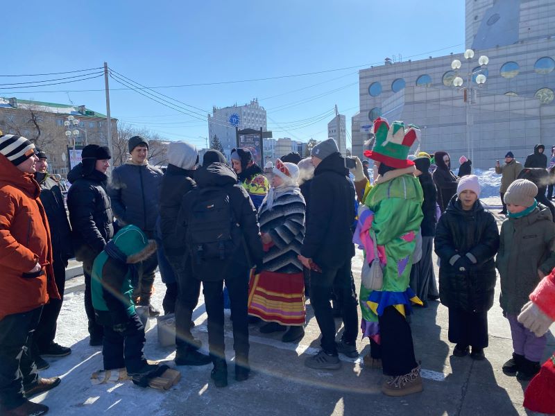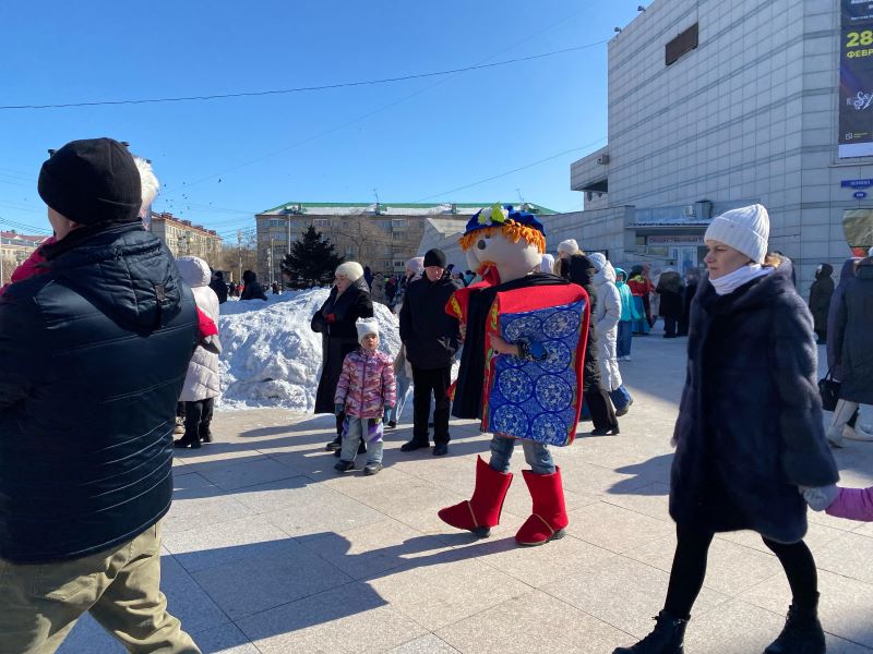 Сегодня на площади около Общественно-культурного центра было многолюдно: здесь горожане отмечали Масленицу и встречали весну. На мероприятии побывал и фотокорреспондент Амур.инфо.