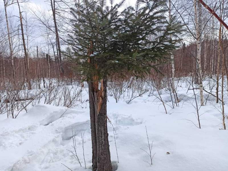 Во время осмотра территории лесничие на патрульном автомобиле проезжали мимо участка, на котором 15 лет назад случился пожар. На месте старой гари, поросшей молодой березкой, в глаза им бросился обломанный ветром сухой пенек и торчащее из него молодое хвойное деревце.