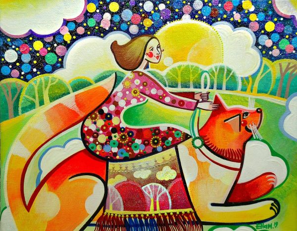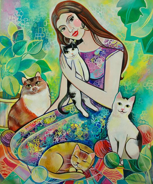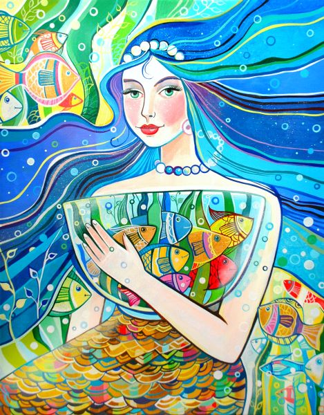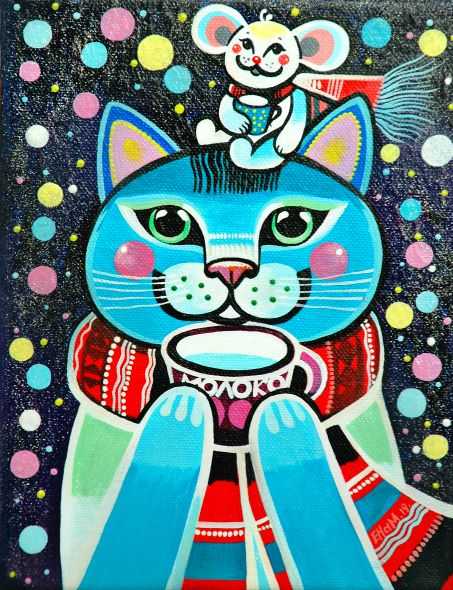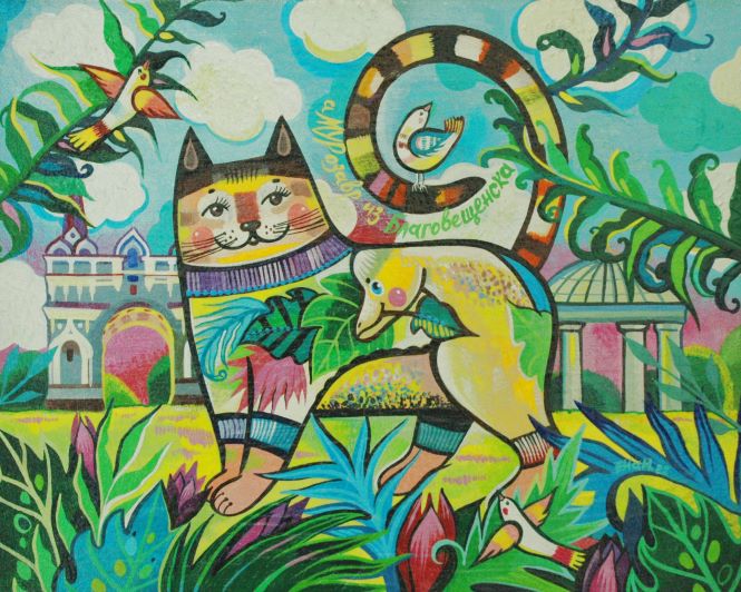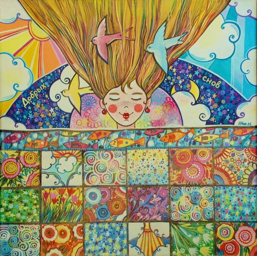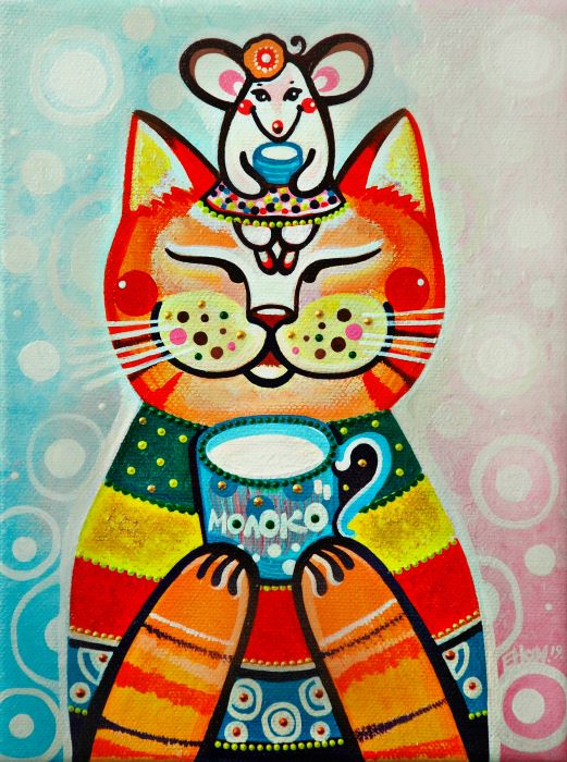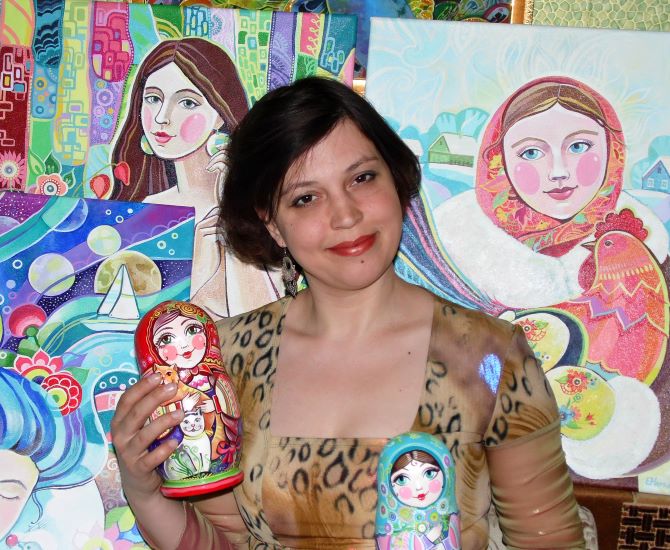 В 2015 году я перешла на акрил и холст. Акрил очень хорошо подходит для росписи и декоративной живописи. И всё-таки графика имеет свои существенные минусы: её очень тяжело исправить. Конечно, появилось больше возможностей с этими новыми материалами – разная фактура, более насыщенный цвет, больше смелости в работах и, естественно, экспериментов. И стиль опять поменялся. Менялась со временем и тематика.