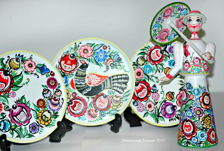 Около семи лет я преподавала разные художественные предметы в педагогическом колледже. И мне неожиданно дали вести роспись по дереву. Конечно, в то время я была не специалистом, не мастером именно в этой сфере. Мне приходилось самостоятельно изучать народную роспись, различные мотивы, её виды, историю. Считаю, что я всё это прошла вместе со студентами. Помогали книги и интернет. И вот с 2010 года я занимаюсь росписью по дереву. На самом деле мне было нетрудно обучиться: помогли мои декоративные натюрморты. Их до росписи было сделано множество, и рука у меня уже была набита, база наработана. Усидчивость, аккуратность, терпение и желание созидать – это важные требования для занятий росписью. Сейчас я занимаюсь авторской, декоративной и народной росписью. Какое-то время занималась батиком – росписью по ткани. Но, опять-таки из-за нехватки времени пришлось это всё отложить, да и для такого творчества нужна мастерская.