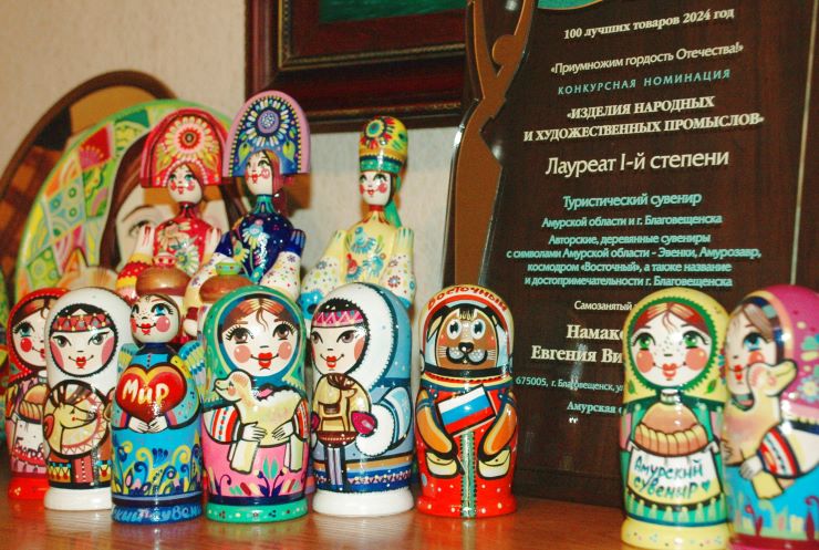 — Когда я начинала свой творческий путь как художник и мастер, то, будучи ещё новичком-энтузиастом, с радостью участвовала в разных конкурсах. Всё-таки тогда я была моложе, было больше интересов и энергии. Конкурсы самые разные: Russian Art Week, «Дальний Восток мастеровой», какие-то конкурсы международные, российские, областные… Много всего было. А сейчас уже выбираю, где представить свои работы. В последних конкурсах, в которых принимала участие, старалась продвигать свой туристический сувенир. Из последних и важных для меня конкурсов особо отмечу всероссийскую программу «100 лучших товаров России»: там я стала лауреатом 1 степени в конкурсной номинации «Изделия народных и художественных промыслов». Именно туристический сувенир, посвящённый Амурской области, и получил награду.