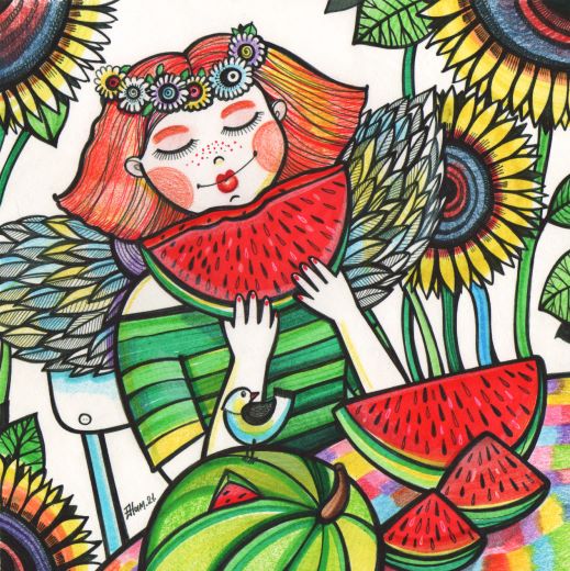 — Это женские образы, животные, цветы, пейзажи. Я изображаю то, что любят женщины. Женские образы мне близки: где-то я изображаю себя и то, что меня привлекает. Ещё мне очень интересны времена года. Лето – мой любимый сезон. В это время столько красивого и вкусного можно изобразить! А зимой я делаю соответствующие работы и готовлю разные сувениры к Новому году. Обожаю рисовать осень, когда она яркая и падает листва. Ну а весна для меня – это, прежде всего, майские деньки. В это время на душе радость, я ощущаю приятные ароматы и вижу, как всё цветёт. Также часто на новые образы меня вдохновляют праздники, жизненные моменты, животные и даже сны, фильмы, музыка, отдых и многое другое.