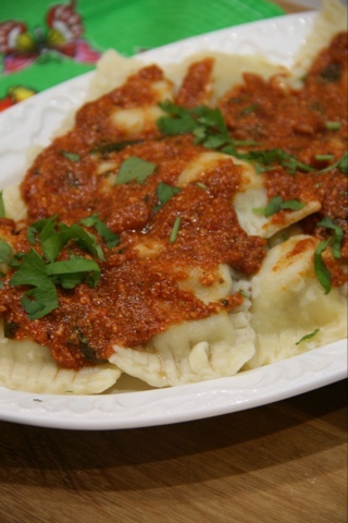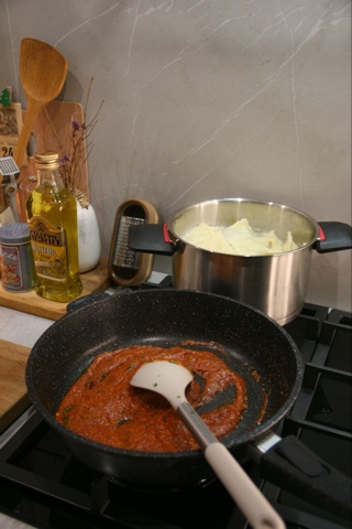 Пока равиоли варятся, приступаем к приготовлению соуса. Какая паста без него?