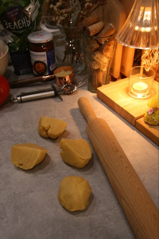 Готовое тесто необходимо убрать в пакет и дать отдохнуть минут 30-40. После этого тесто станет мягче и податливее.