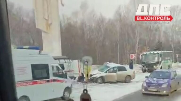 В пабликах областной столицы распространяются кадры с места аварии в районе стелы на въезде в Благовещенск. На дороге из аэропорта в амурскую столицу маршрутный автобус попал в жёсткое ДТП вместе с несколькими другими автомобилями. Как сообщают очевидцы, в этой аварии пострадали люди. На кадрах, снятых свидетелями, видно, что на месте работает скорая.