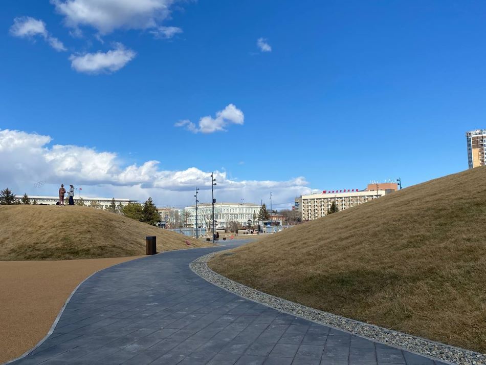 Стоит отметить, что для прохода стал доступен ландшафтный парк с искусственными холмами. Там, между зелёных холмов, чем-то напоминающих домики хоббитов из истории Толкиена, сделали специальные дорожки, по которым и стоит ходить или ездить на велосипедах. А вот зелёные газоны и холмы для двухколёсного транспорта не предназначены, поясняют в администрации Благовещенска.