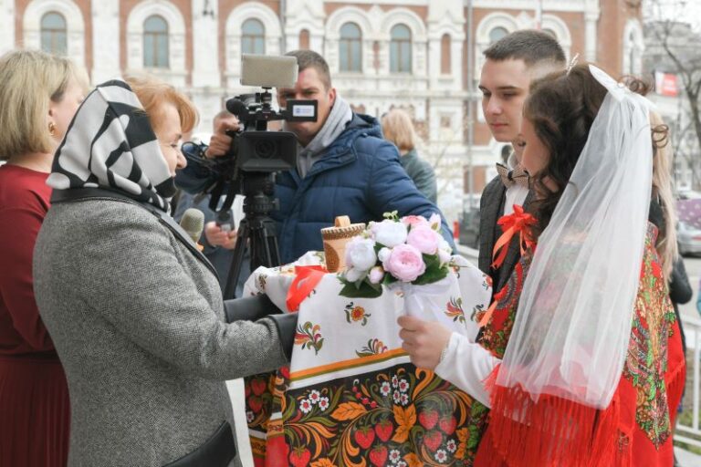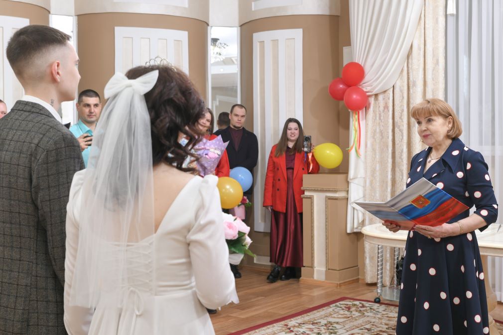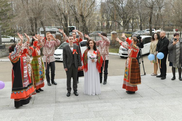 В Благовещенске уже отпраздновали Красную горку, и открылась она свадьбой амурчан Сергея и Эвелины. На церемонии в местном отделении ЗАГС собралось множество друзей и родных счастливой пары. Наталья Томилова лично встретила их у ворот и вручила символический подарок – бочонок мёда, чтобы жизнь молодожёнов была сладкой и наполненной счастьем.