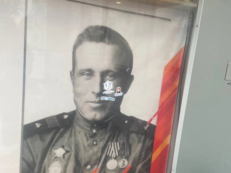 На остановке в Благовещенске девочка-подросток обклеила стикерами портрет ветерана