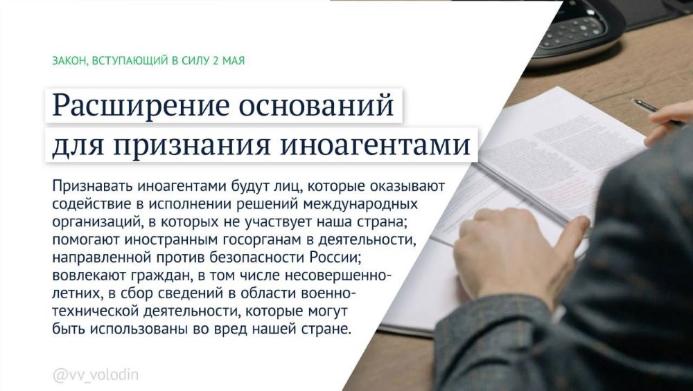 Список иноагентов пополнится новыми лицами, а банки усилят защиту от мошенников. Какие законы вступают в силу в мае, рассказали в Государственной Думе Российской Федерации.