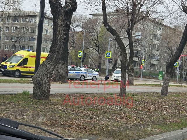 1 мая во второй половине дня в амурской столице на пересечении улиц Горького и Шимановского работала скорая помощь. Её спецавтомобиль, а также транспорт Госавтоинспекции России и белую иномарку запечатлели случайные свидетели.