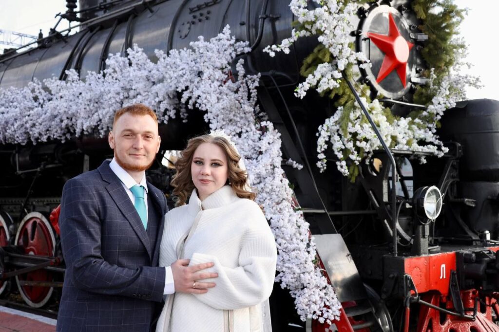Особенным этот день стал и для молодой пары из Ерофея Павловича, которая сыграла свадьбу 5 мая и пришла встретить «Победу» прямо после росписи.