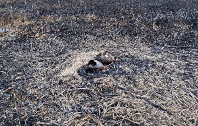 Он также отметил, что гнёзда даурских журавлей уцелели, но пока птицы спасались от огня и отсутствовали на гнёздах, некоторые кладки разорили и съели вороны.