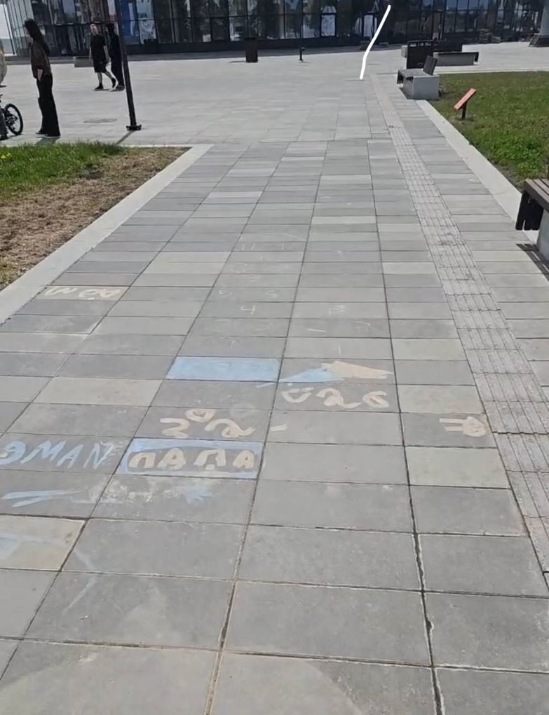 На тротуарной плитке в прогулочной зоне возле площади Ленина в Благовещенске появились сделанные детьми надписи, и это было бы даже мило, если б не одно «но»: они нанесены краской. Отмыть плитку уже не получится, а значит, покрытие придётся менять.