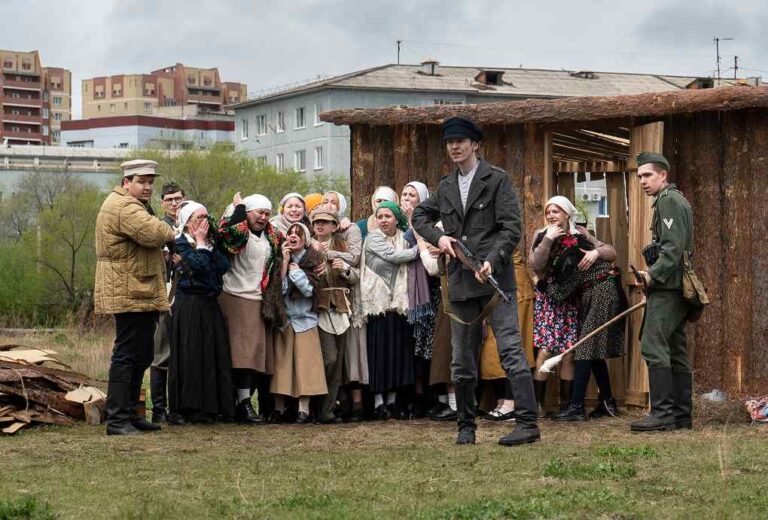На территории вуза построили фрагмент деревни, где разворачиваются ключевые события. Участники постановки перевоплотились в солдат Красной армии, обычных сельских жителей, некоторым пришлось играть роли захватчиков и предателей. Для участия в мероприятии студенты и преподаватели научились стрелять из оружия времен Великой Отечественной войны.