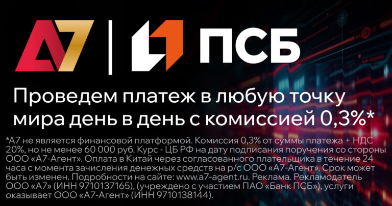 «А7 помогает предприятиям разного масштаба по всей стране – от крупных корпораций до малого бизнеса – осуществлять международные расчеты в адрес зарубежных контрагентов по всему миру. Причем операции проводятся в любых валютах, а денежные средства «выпускаются» в адрес получателя за рубежом день в день, что для российских компаний является весомым аргументом в текущих условиях. Кроме того, компания предлагает низкую комиссию: для импортеров она составляет всего 0,3% (без НДС) по курсу ЦБ РФ на дату подписания поручения на платёж».
