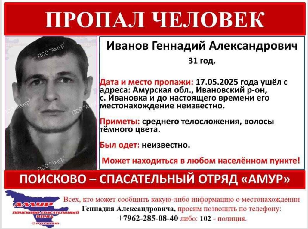 Геннадий Александрович Иванов ушел из дома в селе Ивановка Ивановского района 17 мая 2025 года, до настоящего времени его местонахождение неизвестно, сообщают волонтеры поисково-спасательного отряда «Амур».