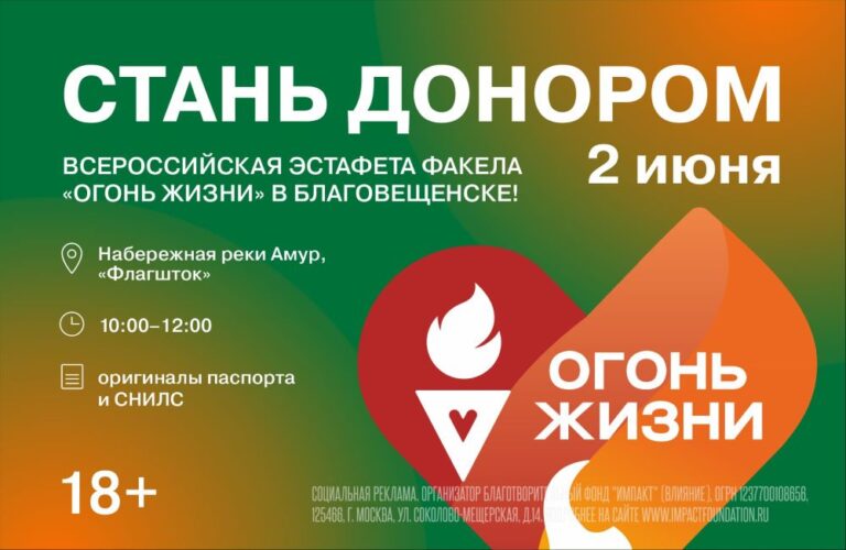 2 июня 2025 года в Благовещенске состоится важное событие – этап Всероссийской эстафеты факела «Огонь жизни» (18 +). Это масштабная акция, которая охватит все регионы страны и объединит тысячи людей.