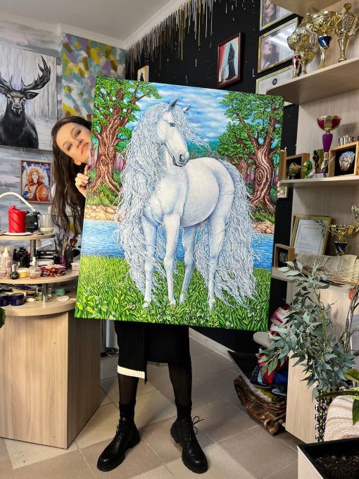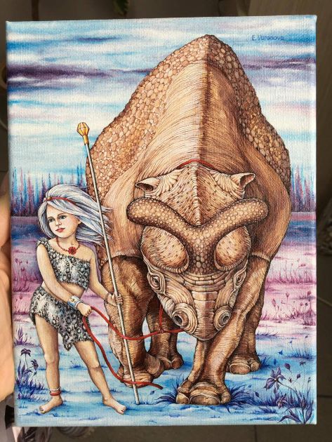 — Темы моих работ, конечно, самые что ни на есть волшебные. Например, недавно Амур я рисовала. Я его увидела белым драконом. Хоть, согласно мифологии, и считается, что это особый символ – чёрный дракон, но я его увидела белым. И ещё одна из недавних работ – автопортрет в виде эльфа. То есть сюжеты мои, в общем-то, мистические, сказочные. Такие темы мне ну очень нравятся.