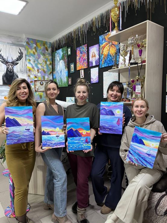 Ещё я обучаю живописи акрилом, маслом, акварелью, да и ещё много каким творческим нюансам. Причём с охотой всем этим занимаются не только дети, но и взрослые, которым хочется отдохнуть, расслабиться – например после рабочего дня – и позаниматься такой вот арт-терапией, поговорить с самим собой, со своей душой во время рисования. Художественное творчество как раз даёт такую возможность.