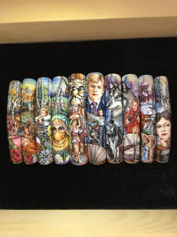 — Тематика моих работ очень разнообразна. В целом всё зависит от заказчиков картин: с учётом всех предпочтений получается всегда эксклюзив, сюжеты никогда не повторяются – что на ногтях, что на холстах. У меня уникальная техника письма – миниатюра. То есть все мои работы, от ногтей до больших картин, всегда проработаны детально, вплоть до прорисовки мельчайших подробностей.