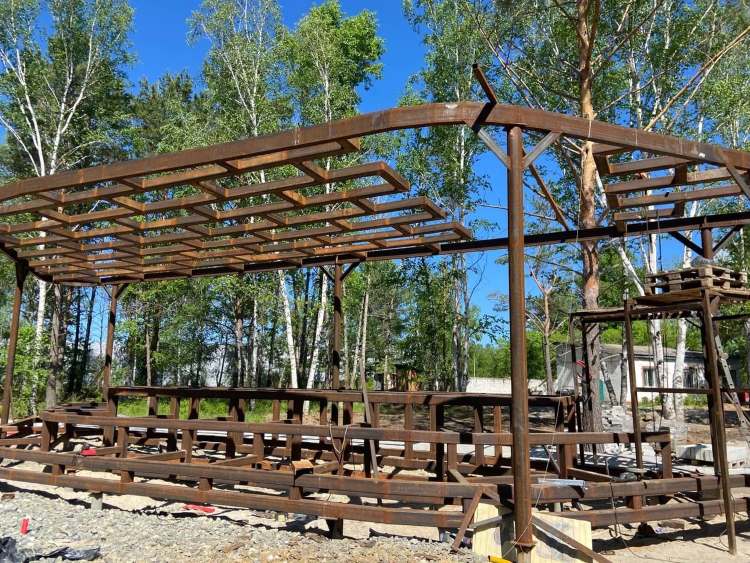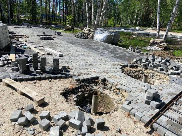 Работы по реконструкции начались в прошлом году. Подрядчики уже уложили тротуарную плитку, провели сети канализации, водоснабжения и электроснабжения. Сейчас заливают фундаменты для кафе и монтируют сцену.