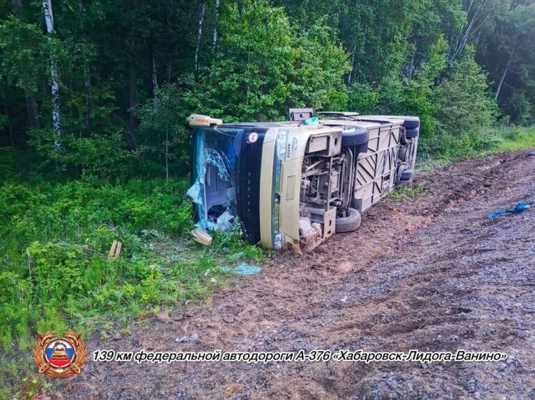 На трассе в Хабаровском крае перевернулся автобус с вахтовиками. Авария произошла 14 июня около трёх часов ночи на 139-м километре трассы Хабаровск – Лидога – Ванино. Как сообщили в Госавтоинспекции, водитель не справился с управлением, и автобус съехал с дороги в кювет, после чего перевернулся.