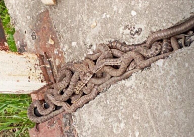 По словам очевидцев, десяток змей, которые сплелись друг с другом, встретился им на мосту в районе села Буссе. Жители района отметили, что они напоминают щитомордников, которые обитают на этой территории.