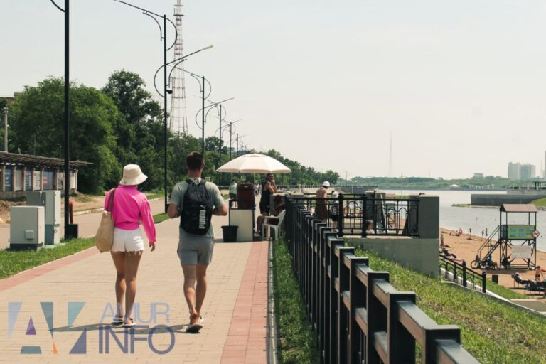 Поэтому горожанам, планирующим прогуляться вдоль пограничной реки, воду стоит взять с собой заранее, а также не забыть головной убор – в Благовещенске ввели особый режим из-за сильной жары.
