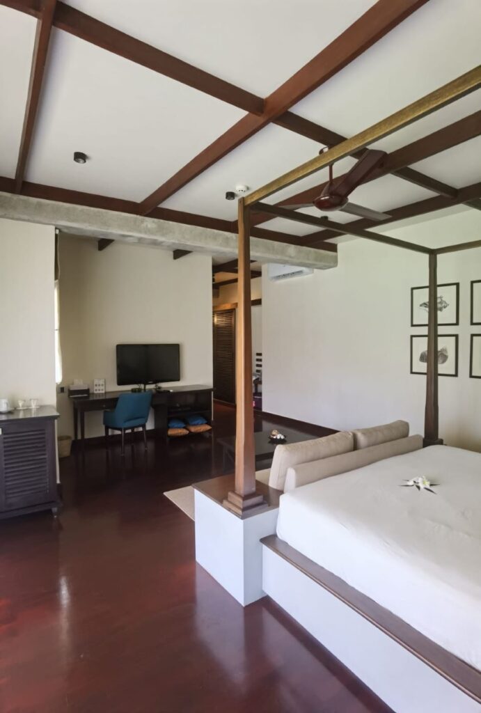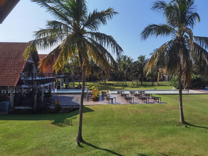 Если говорить о проживании, то гостиничные номера, я так поняла, на Шри-Ланке принято делать широкими, большими, просторными, и это, как по мне, огромный плюс. Вот у нас, например, в отеле был потолок метра три с половиной высотой, наверное, и такой широкий, добротный номер, как квартира-студия, может.