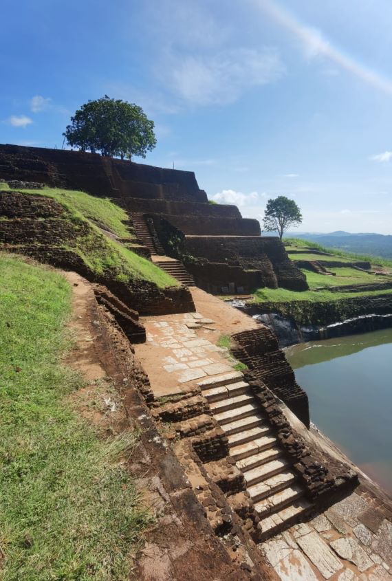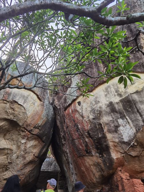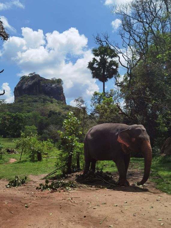 Мы отдыхали на северо-восточном побережье, и потому у нас была возможность посетить такие места, как, например, древняя крепость Сигирия и город Элла. Практически разрушенная крепость Сигирия находится примерно метрах в двухстах над землей. Внизу когда-то были фонтаны, сады, а на самом верху находился дворец местного правителя. Первая половина пути к нему проходит по каменным лестницам, а вот дальше идёт отвесная стена. И вот вдоль этой стены для подъёма сделали современную металлическую лестницу. Но подъём того стоит, хоть по пути и дух захватывает то ли от жары, то ли от ощущения высоты. Стоишь у фундамента дворца и ощущаешь себя властелином неба. К слову, и туда по этим лестницам запросто поднимаются собаки, без них и там не обходится.