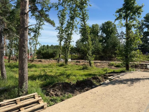 «Подрядчик работает в графике. К сентябрю здесь будет зелёная зона с пешеходными дорожками, детской площадкой, зоной воркаута», – поделился наблюдениями Олег Имамеев.