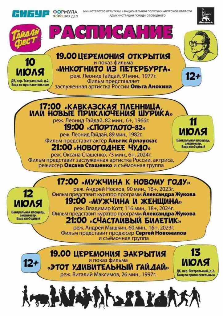 Мэр города Свободного в своем телеграм-канале анонсировал начало фестиваля, посвященного памяти легендарного земляка, советского режиссёра Леонида Гайдая, и пообещал насыщенную культурную программу.
