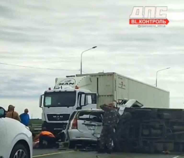 Очевидцы засняли лежащий на боку микрогрузовик и прижавшуюся к леерному ограждению фуру, между ними – смятый легковой автомобиль, а также человека прямо на проезжей части – над ним склонились прибывшие на место медики. В пресс-службе амурского управления Госавтоинспекции России корреспонденту Амур.инфо подтвердили факт ДТП, однако уточнили, что поделиться его деталями, в частности уточнить, есть ли погибшие, смогут позднее.