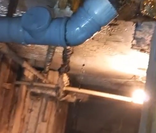Чтобы не быть голословным, он прислал в редакцию видео прямиком с места происшествия. На кадрах жильцы дома запечатлели сияющий от конденсата воды потолок, водяной пар и провисшие плиты.