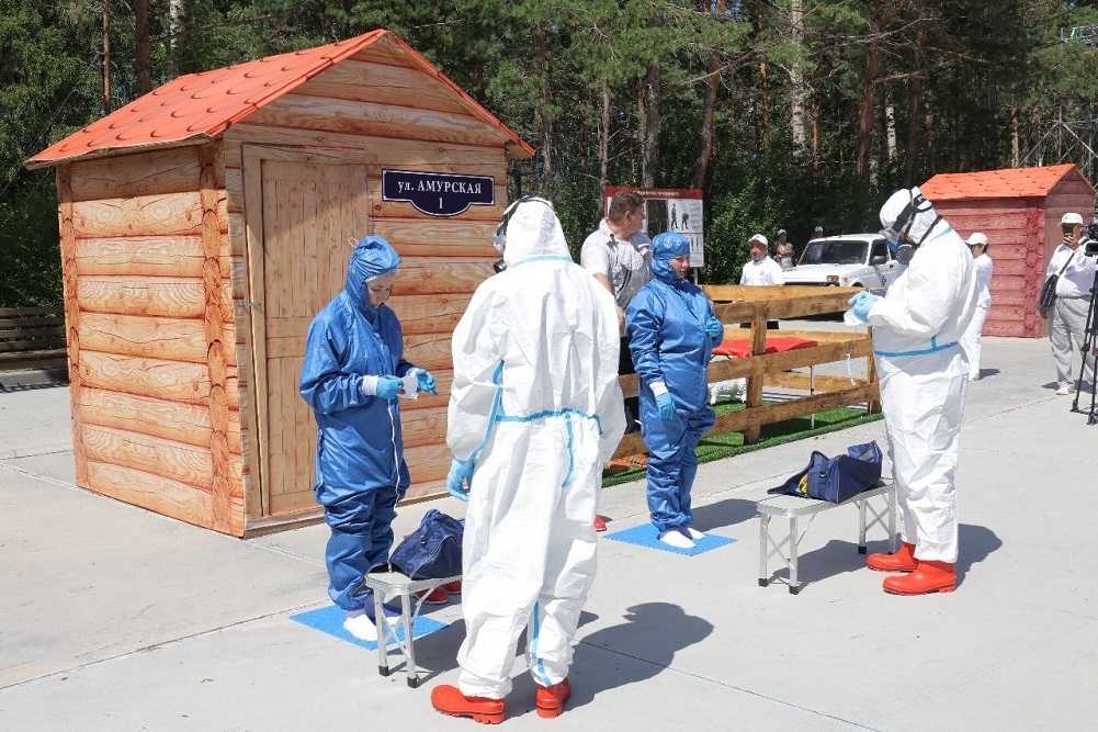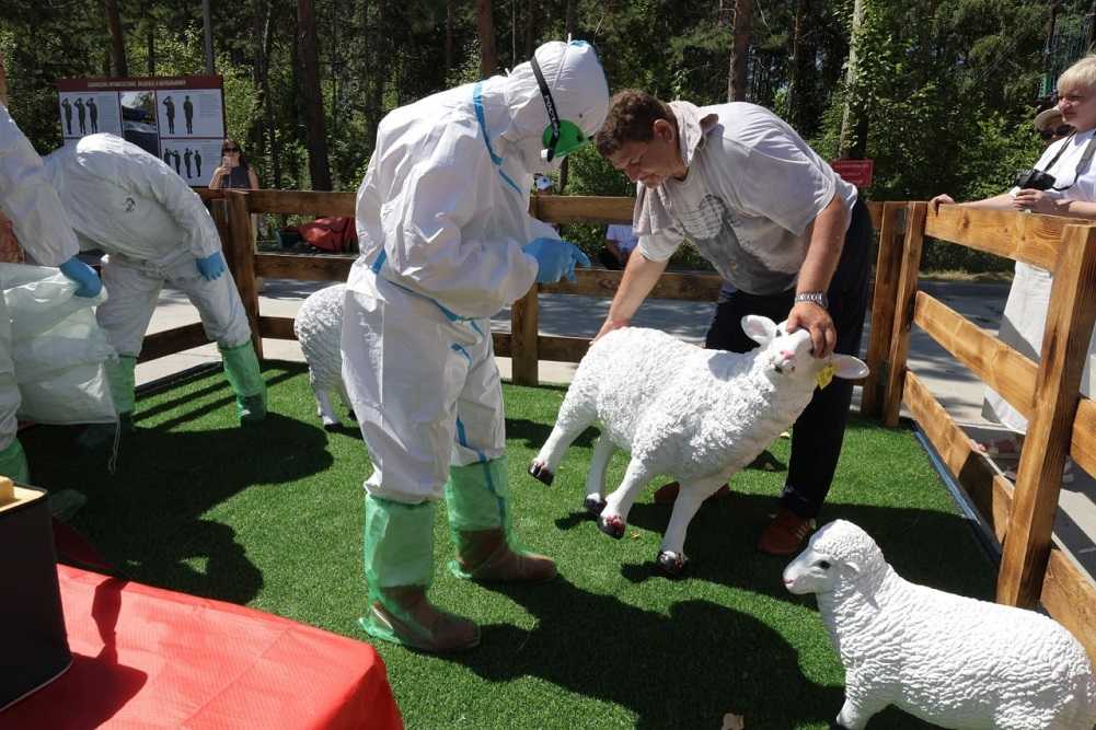 Кроме того, в рамках выездного мероприятия в Амурской области проводились командно-штабные учения государственных ветеринарных служб с участием Минобороны России, ФСИН России, Росгвардии и Россельхознадзора по ликвидации условных очагов заболевания животных. В рамках КШУ отрабатывались практические навыки межведомственного и межрегионального взаимодействия, такие как развертывание контрольно-пропускных пунктов, использование различных образцов дезинфекционной техники, средств индивидуальной защиты при обработке территории, зданий и техники.